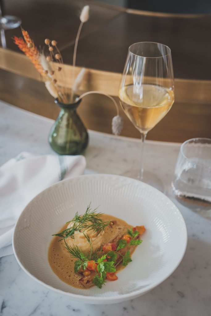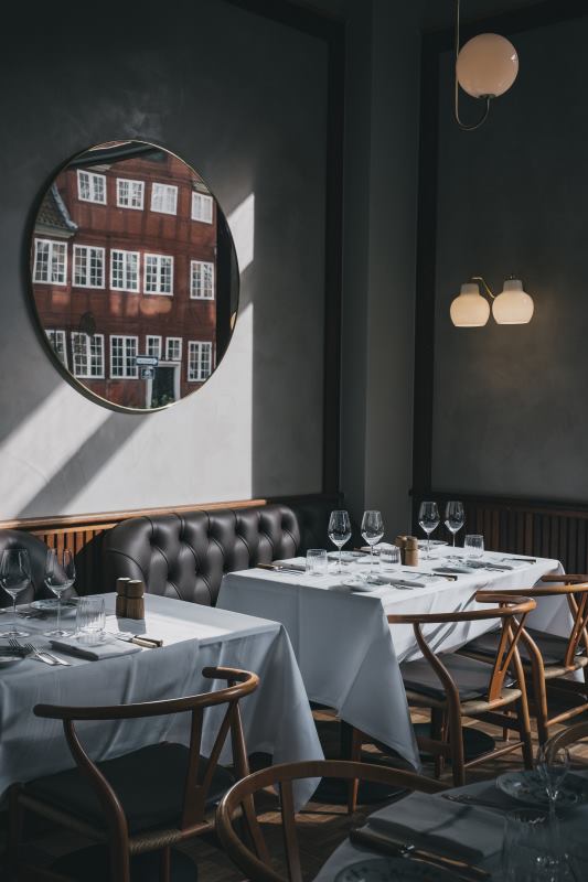 I restauranten er frokostmenuen bygget op omkring klassiske frokostretter, i fortolkninger af de unge hænder i køkkenet, med fødderne i bevægelse, og benene solidt plantet i de danske gastronomiske traditioner.